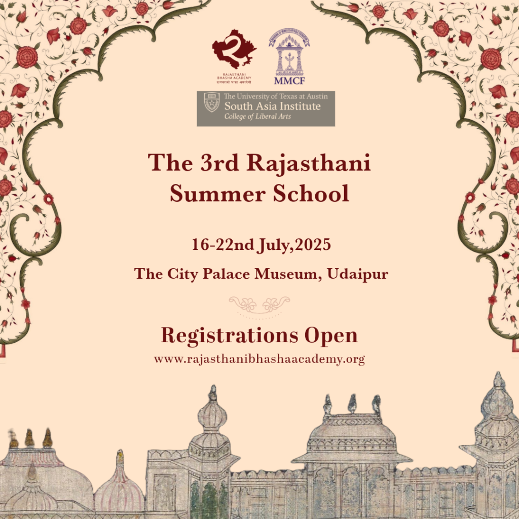 The Rajasthani Bhasha Academy successfully concluded its Third Edition of the Summer School from 16th to 22nd July, 2025, held in collaboration with the Maharana of Mewar Charitable Foundation and the South Asia Institute, University of Texas at Austin. This immersive week-long program convened international scholars, researchers, and students from the disciplines of linguistics, art history, history, anthropology, and musicology, amongst others. The Class of 2025 undertook rigorous examination of Udaipur’s courtly literary and visual traditions, analyzing the diachronic development of Rajasthani linguistic forms from medieval manuscripts to their contemporary manifestations, while investigating how textual narratives and paintings articulated the political and cultural dynamics of the Mughal-Rajput imperial framework and captured the material splendor of eighteenth-century courtly life.